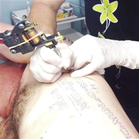 - Zuerst wird die zu tätowierende Haut nach Anomalien wie Muttermal, Narben, Hautkrankheiten etc. begutachtet.